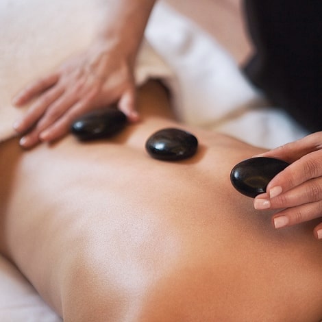 Piedras calientes o ventosas aplicadas durante el masaje para potenciar la relajación, activar la circulación y aliviar tensiones profundas.